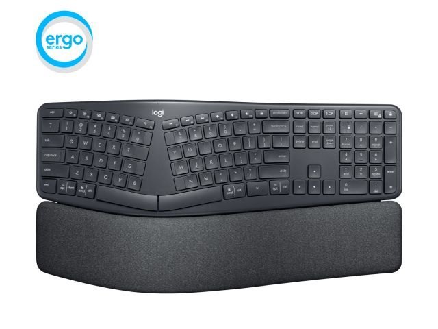 Teclado Inalámbrico Logitech Ergo K860 Ergonómico: UNA MEJOR EXPERIENCIA DE ESCRITURA. Presentamos el ERGO K860, un teclado partido ergonómico diseñado para disfrutar de una postura mejor, reducir la tensión y tener más soporte. Escribirás con más naturalidad con un teclado curvado y partido que mejora la postura. La forma inclinada reduce la tensión muscular en las muñecas y los antebrazos. Así, las manos y los hombros permanecen relajados. MEJOR POSTURA, MEJORES RESULTADOS: La estructura de teclas curvada del ERGO K860 permite colocar las manos, las muñecas y los antebrazos en una postura más natural. Notarás que las manos no están en tensión en el teclado. Se ha demostrado que ERGO K860 reduce un 21% la actividad muscular2En comparación con un teclado Logitech tradicional sin reposamanosdel trapecio superior, un músculo clave en el centro de la espalda que estabiliza y facilita el movimiento de los hombros y del cuello. TRES CAPAS DE COMODIDAD Y SOPORTE: treposamuñecas acolchado coloca los antebrazos justo por encima del teclado, lo que ofrece un 54% más de soporte de las muñecas y reduce la flexión de las muñecas en un 25%.3En comparación con un teclado Logitech tradicional sin reposamanos: 1. CAPA DE SUPERFICIE: 0,5 mm de TEJIDO con recubrimiento suave al tacto, duradero, resistente a las manchas y fácil de limpiar. 2. CAPA DE SOPORTE: 2 mm de ESPUMA DE ALTA DENSIDAD proporcionan una sensación confortable y firme que dispersa por igual la presión. 3. CAPA DE CONFORT: 4 mm de ESPUMA VISCOELÁSTICA ofrecen una sensación agradable y personalizada que mejora la sensación de confort y relajación. ELEVACIÓN DE LAS MUÑECAS Mantén las muñecas en una postura cómoda y natural, sentado y de pie, con una innovadora función de elevación de palmas. La inclinación de las patas ajustables de 0°, -4° y -7° eleva las palmas a la posición ergonómica óptima según tu configuración exclusiva. PRECISIÓN SIN ESFUERZO CON TECLAS PARA PULSACIONES PERFECTAS: Una experiencia de escritura fluida y ultraprecisa sin comprometer la velocidad ni la precisión. Tus dedos se deslizan con total fluidez por la superficie mate de las teclas. Y los detalles táctiles ayudan a orientar los dedos y a mantener la concentración. El teclado partido y la curva convexa fomentan una colocación de manos y dedos más natural.